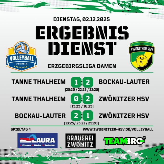 Im ersten eigenen Spiel traf man auf die Gastgeberinnen aus Thalheim. Dort konnte man einen nie gefährdeten 2:0 Auswärtssieg holen. Im zweiten Spiel traf man auf die Damen aus Bockau-Lauter, die bereits gegen Thalheim 2:1 siegreich waren. Den 1. Satz konnte man deutlich mit 25:13 für sich entscheiden. Auch im 2. Satz lag man lange vorn, konnte die 20:18 Führung aber nicht ins Ziel retten und musste mit 21:25 den ersten Satz in dieser Saison abgeben. Somit ging es in einen entscheidenden 3. Satz und auch dort lag man mit 18:14 in Führung. Am Ende verlor man wiederum die Kontrolle über das Spiel und gab den Satz mit 20:25 noch ab. Dies war gleichbedeutend mit der ersten Liga-Niederlage seit fast 2 Jahren. Glückwunsch an die Damen vom VSV Bockau-Lauter!